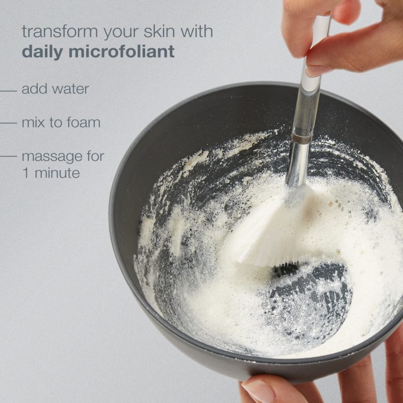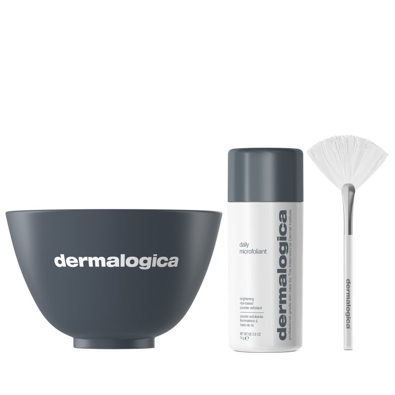 Brighten your everyday exfoliation with professional skin therapist-approved tools: a limited-edition mixing bowl and professional fan brush let you mix and apply Daily Microfoliant like a pro for a glow that’s more than skin-deep.